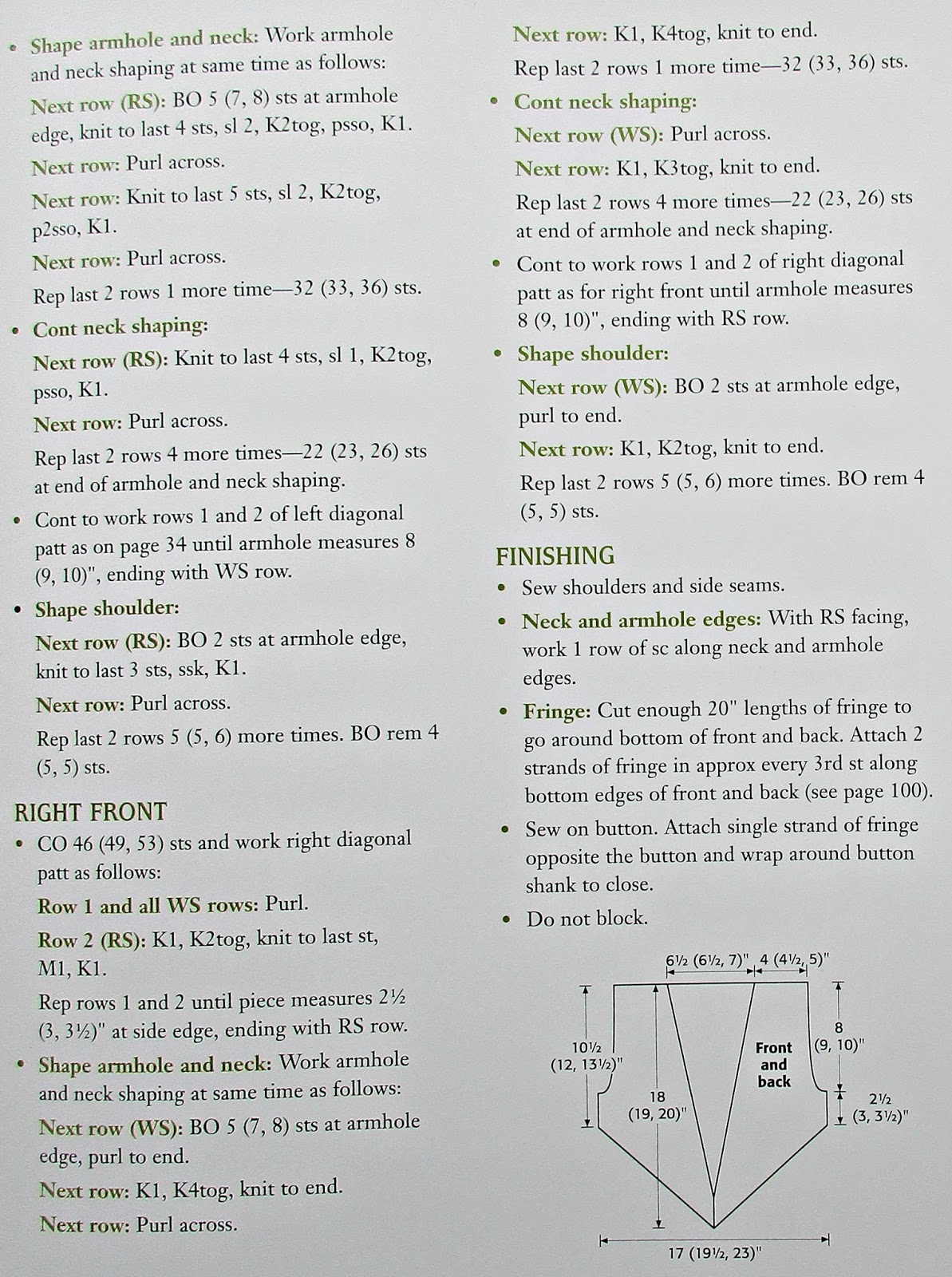 3-жилет необычной формы декоративно украшен супер-длинной бахромой и пуговичной брошкой: