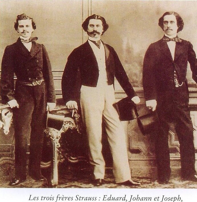 В середине XIX века по Европе колесили с концертами одновременно трое Штраусов. Все они сочиняли вальсы, подписывая их одинаково — только фамилией. Имели схожую манеру исполнения. Многие считали троих братьев одним человеком, а то и путали их с четвертым Штраусом — отцом. В венских газетах острили: «Фирма Штраус. Торговцы музыкой оптом и в розницу».