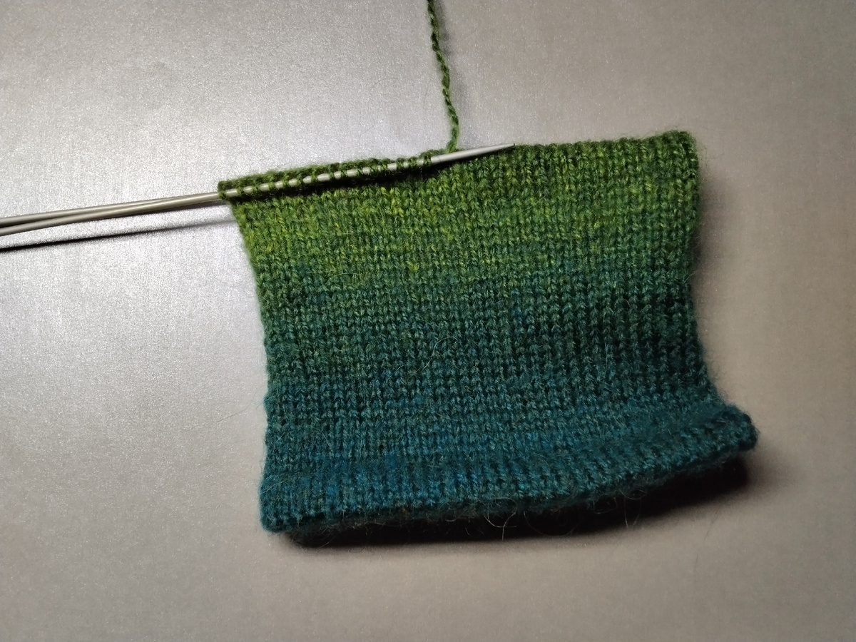 5 рядов вяжем лицевыми по кругу.