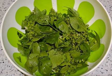 2.Листья и соцветия базилика оборвать и выложить в миску.
