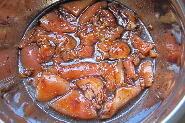 Перемешать мясо с маринадом, накрыть плёнкой и отправить в холодильник на 1.5 - 2 часа.