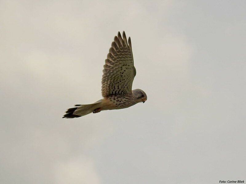 В полете пустельга, как и другие соколы, отличается узкими заостренными крыльями (однако 1 маховое перо короче 2-го) и относительно длинным хвостом с заметной широкой темной полосой по его краю.