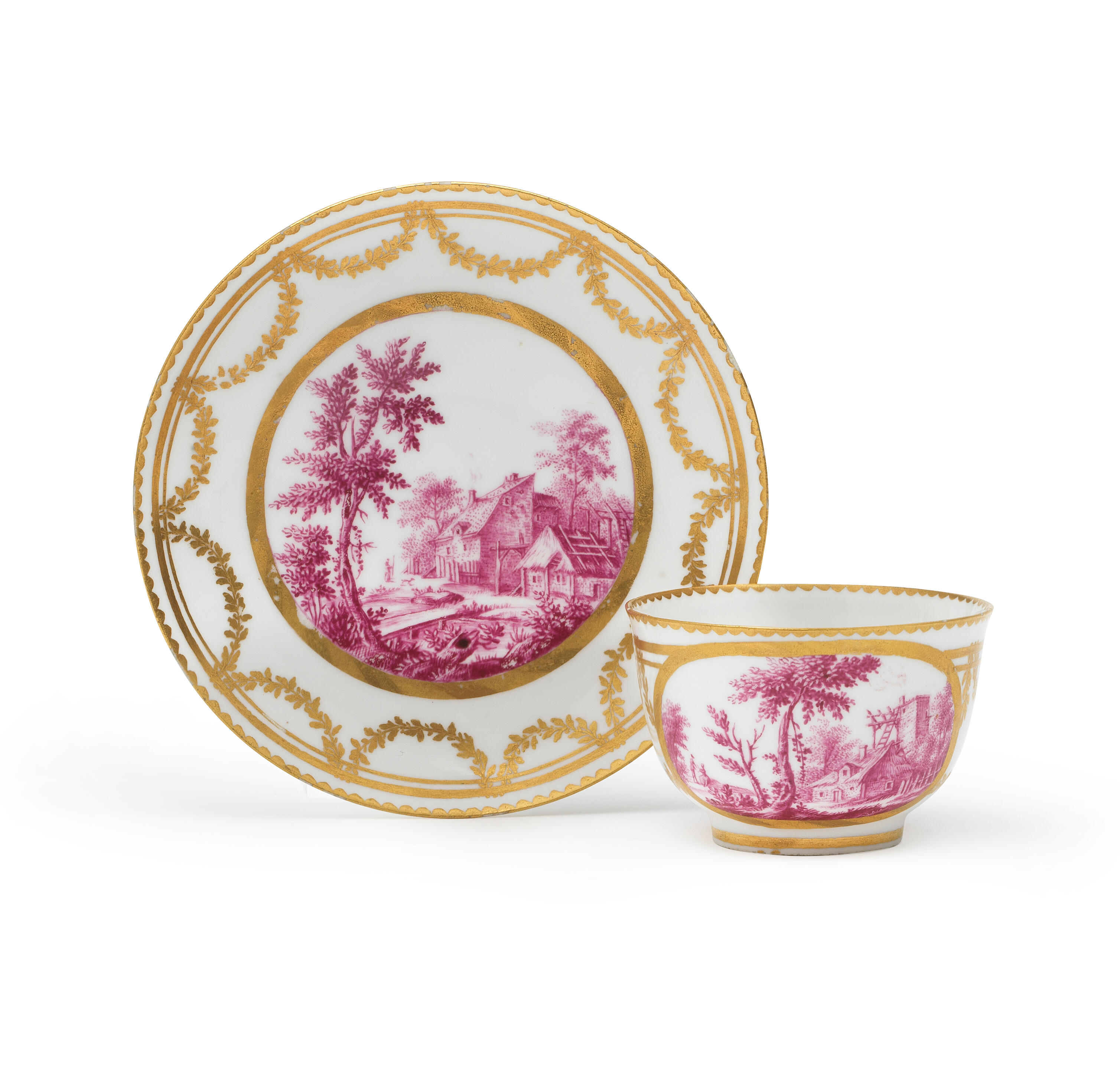 A very rare Sèvres hard-paste teabowl and saucer, dated 1772