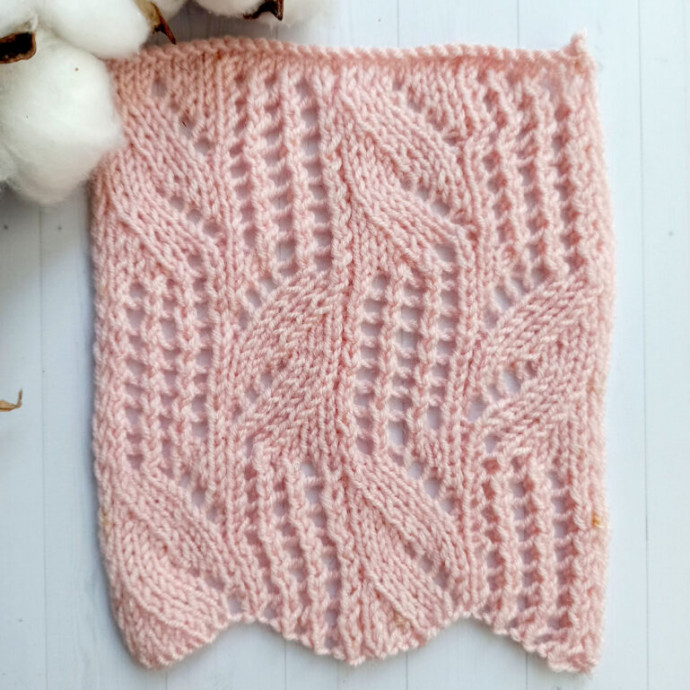 Раппорт узора состоит из 20 петель в ширину + 2 кромочные, и 20 рядов в высоту. В изнаночных рядах, все петли вязать изнаночными.