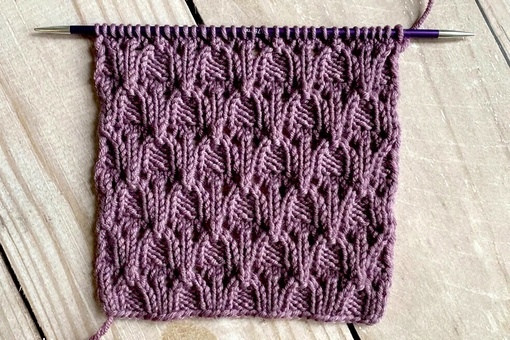 В ширину начать с кромочной петли, повторять 16 петель раппорта, закончить 1-й петлей после раппорта и кромочной петлей.