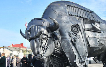 В городе Барановичи 6 ноября торжественно открыли необычную скульптуру. И это зубр!