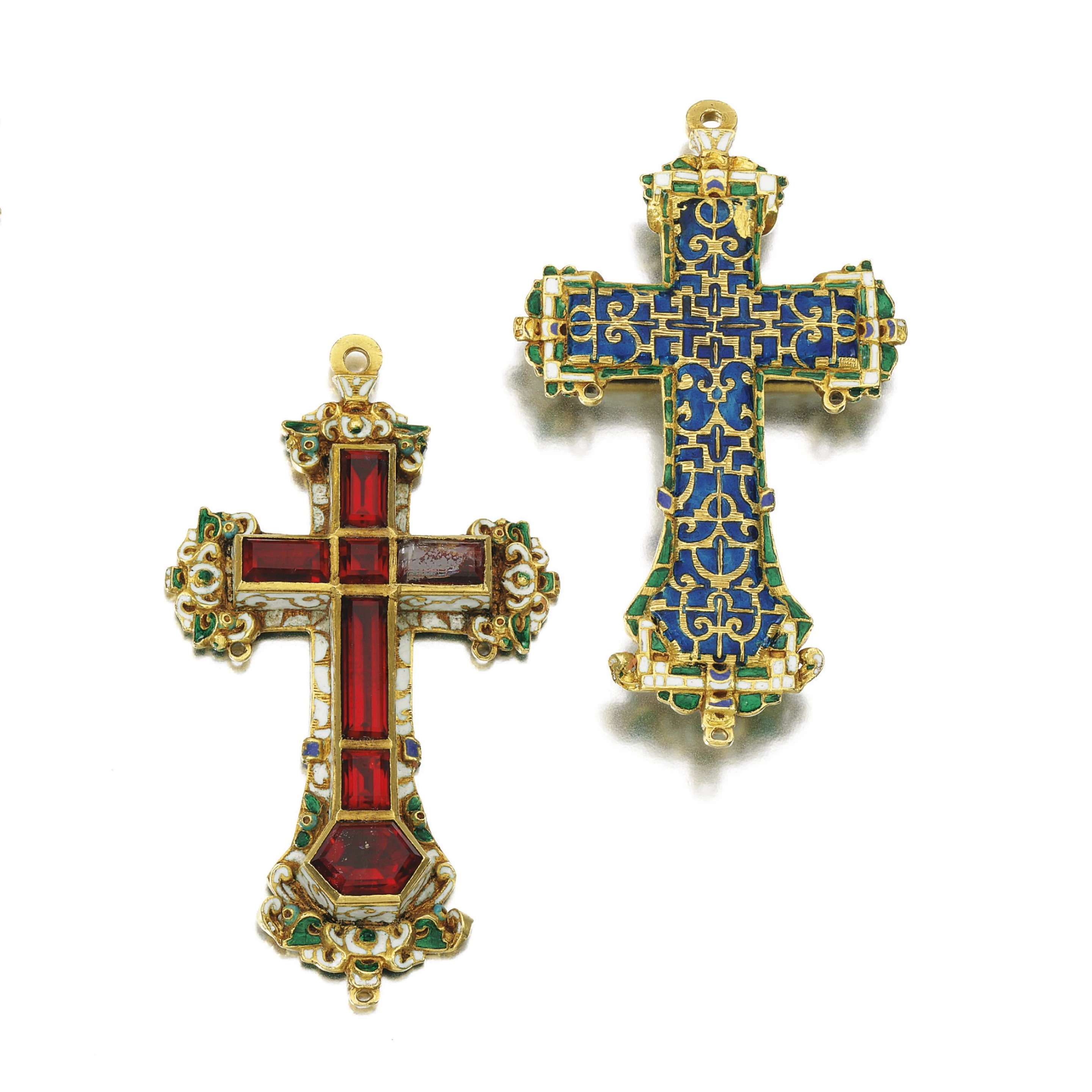 A CONTINENTAL ENAMELED GOLD BELT PENDANT