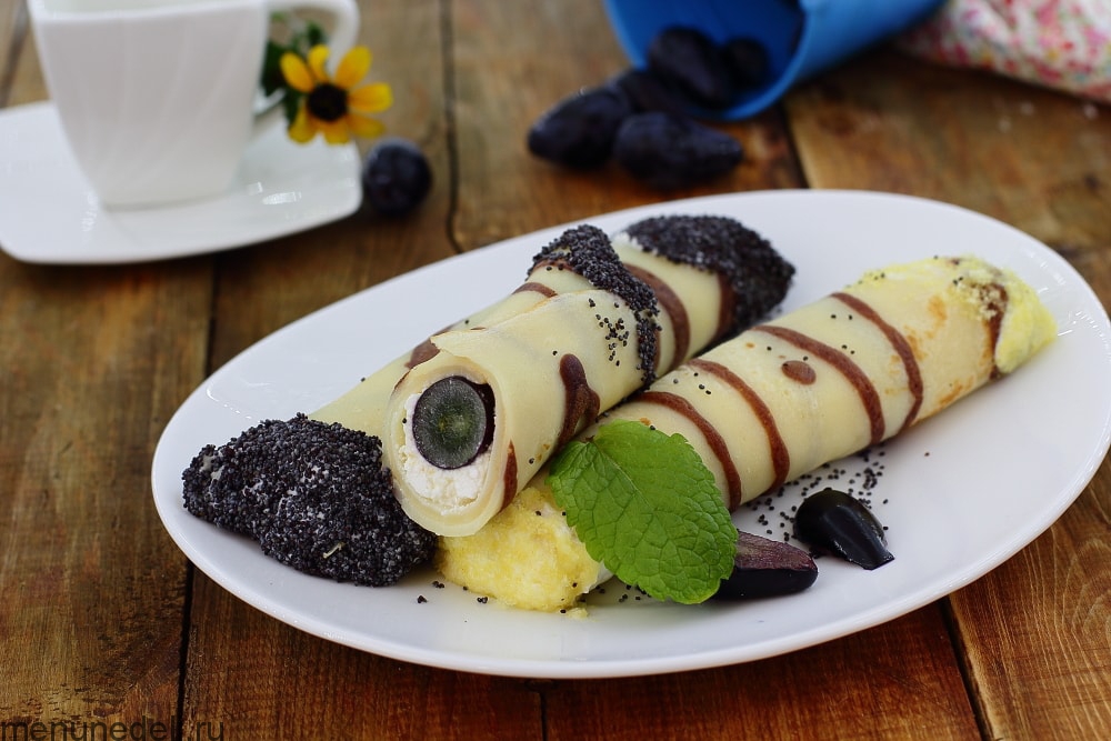 Блинчики с творогом и виноградом