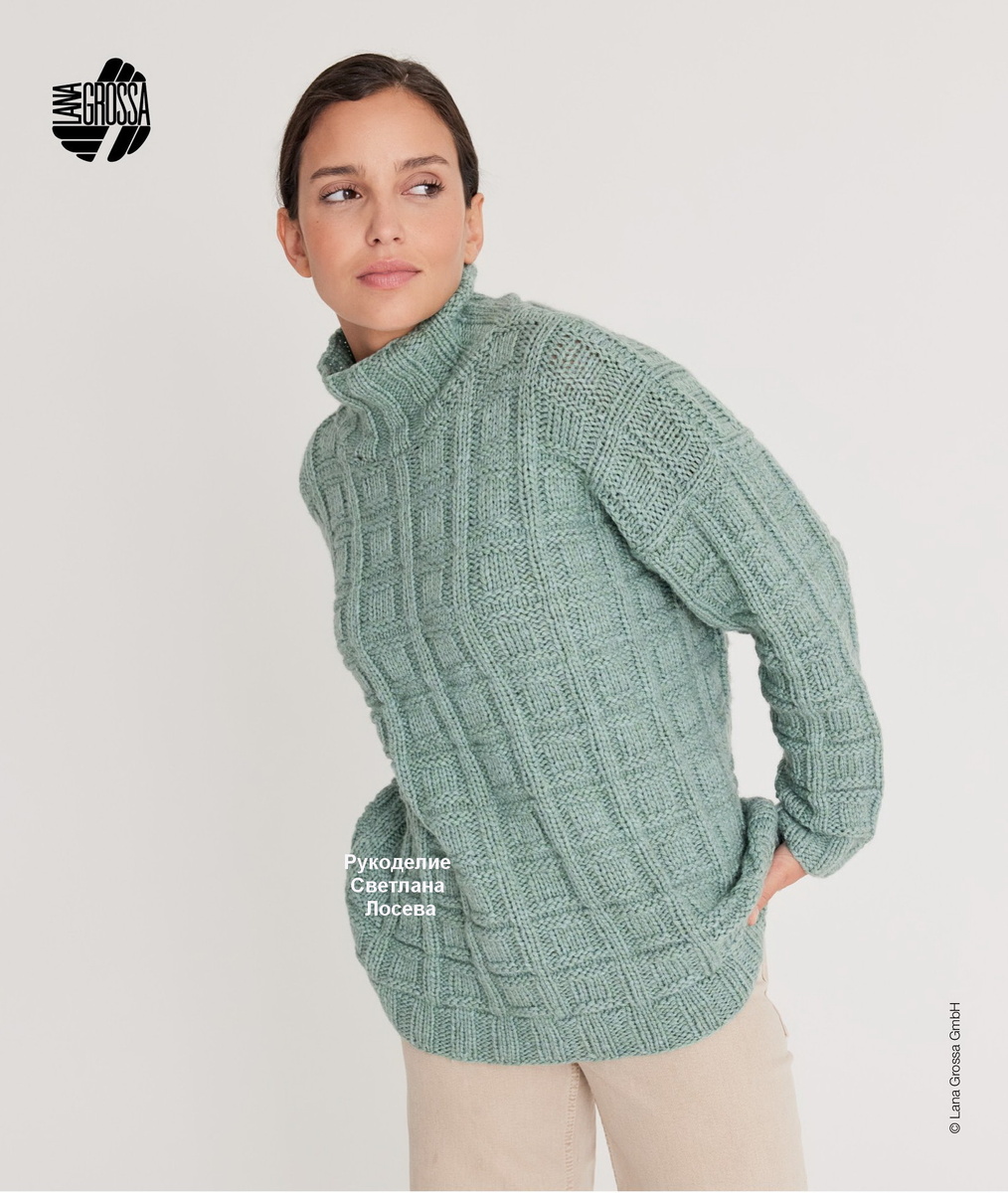 В лицевых рядах петли вязать по узору, изнаночные скрещенные провязывать лицевыми.