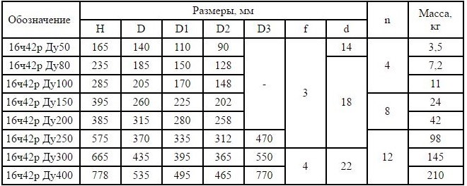 Конструкция клапана 16Ч42Р различается в зависимости от габаритов изделия