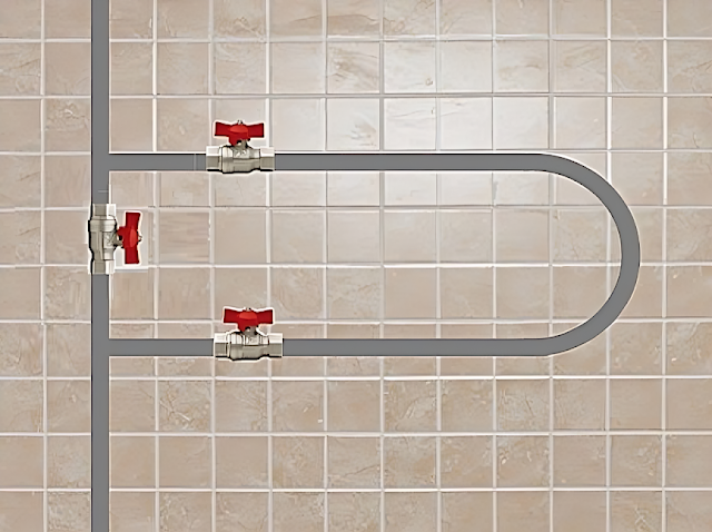 Байпас на полотенцесушителе представляет собой простую конструкцию в виде короткого отрезка трубы, которая подключается перпендикулярно между прямой (подающей) и обратной (возвратной) трубами, образуя обходной путь для теплоносителя. По сути, это перемычка, которая позволяет теплоносителю (горячей воде или теплоносителю отопления) циркулировать в системе, минуя сам полотенцесушитель. Внешне байпас выглядит как небольшой участок трубопровода, часто оснащенный запорной арматурой, такой как вентили или краны, для регулировки потока.