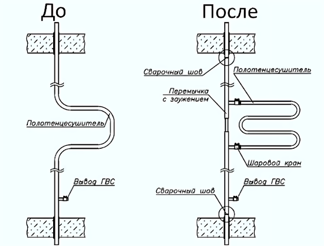 Схема подключения полотенцесушителей типа «Лесенка»