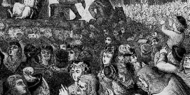 Суды над животными были широко распространены в средневековой Европе. Судьи на полном серьезе рассматривали поведение животных, которые представляют какую-либо опасность для общественности. Заседания проводились в соответствии с правилами: с адвокатами, свидетелями и иными формальностями. Зеваки на казни свиньи в Фалезе. Иллюстрация из книги The Criminal Prosecution and Capital Punishment of Animals (1906) Э. Эванса.