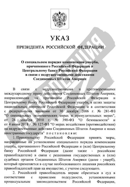 Владимир Путин подписал указ о порядке компенсации ущерба