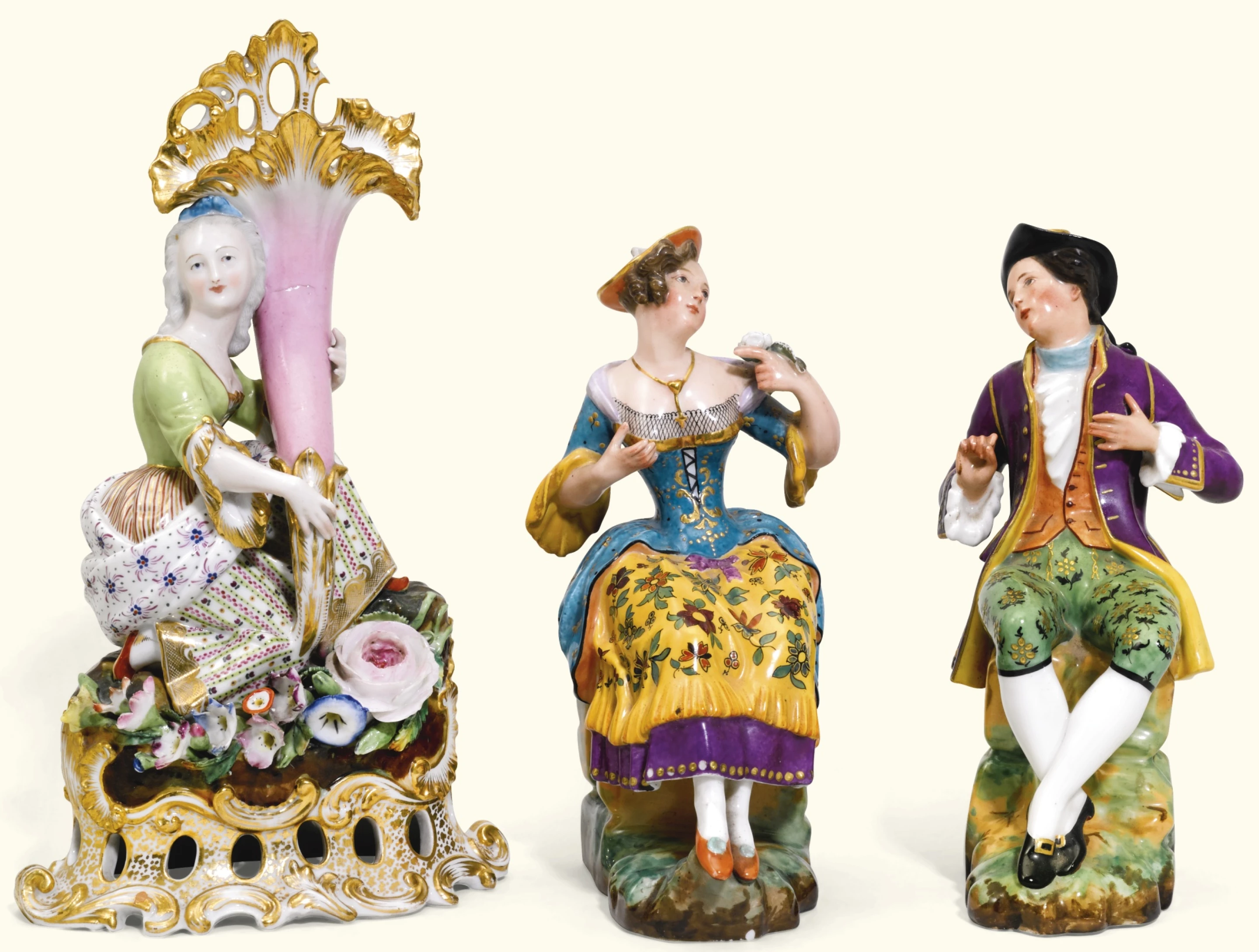 A pair of Jacob Petit porcelain figural scent flasks and a figural vase, circa 1835-1845