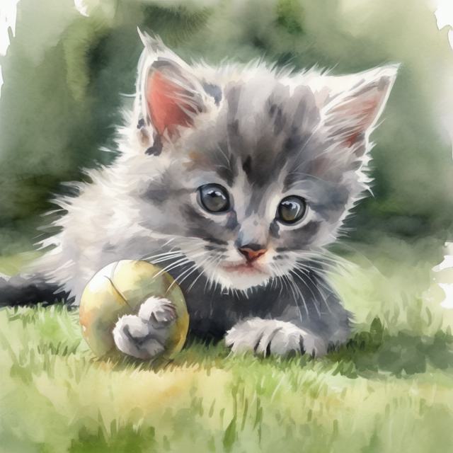 Пушистый котенок играет в мяч на лужайке (акварель нейросеть)Понедельник, 06 Ноября 2023 г. 13:51 (ссылка)