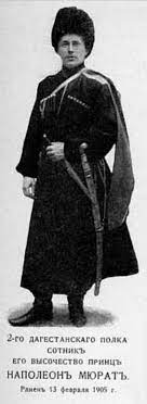 Правнук Каролины Бонапарт и Иоахима Мюрата, внук Люсьена Шарля Жозефа Наполеона Мюрата, принца Понтекорво о котором мы вспоминали в прошлый раз. Российский военачальник, генерал-майор российской армии Истовый Католик. Отец — принц Ашиль (Ахилл) Шарль Луи Наполеон Мюрат, мать — грузинская княжна Саломея Давидовна Дадиани. За храбрость награжден 7 орденами. Отличный кавалерист, большой любитель воздухоплавания, а также как кутила и бретёр. За несколько лет промотал всё своё состояние — около двух миллионов рублей. Был помощником командира Ингушского конного полка "Дикой дивизии", командовал полком Офицерской кавалерийской школы, а затем командир 12-го драгунского Стародубовского полка
