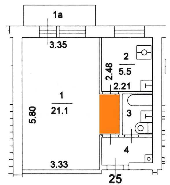Расширение площади санузла за счет нежилых помещений.