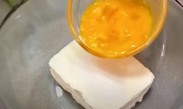 1. Творог размять, смешать с сыром, желтком. Добавить соль и специи. Перемешать и всыпать манку. Перемешать до объединения. Накрыть плёнкой и убрать в холодильник на час