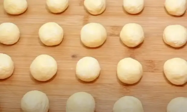 Разделите массу на 6 частей. Чтобы она не липла к рукам, смочите их. Скатайте шарики.