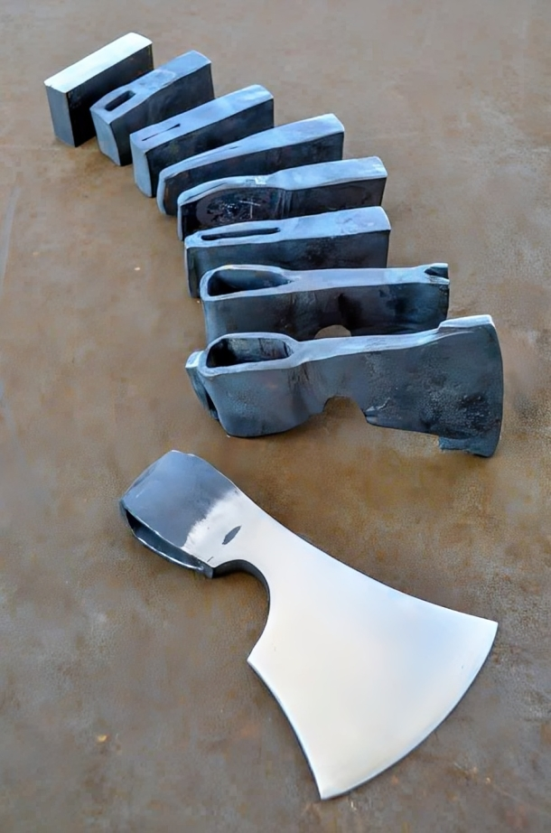 Топор — один из самых древних и универсальных инструментов в истории человечества, символизирующий силу, труд и разрушение. От грубого каменного обломка в руках первобытного человека до высокотехнологичного изделия из легированной стали, топор эволюционировал на протяжении миллионов лет, отражая этапы технологического и культурного развития. В этой статье мастер кузнец проследит путь топора от его истоков до современности, подчеркивая его роль в формировании цивилизаций. Значение топора в истории человечества Топор сыграл фундаментальную роль в эволюции человеческого общества, став не просто инструментом, а катализатором прогресса. С момента появления первых каменных топоров около 1,5 миллиона лет назад он стал ключевым элементом в выживании, экономике и культуре. Этот инструмент позволял человеку взаимодействовать с окружающим миром эффективнее, чем когда-либо прежде, открывая новые возможности для строительства, охоты и защиты. В палеолите топоры позволяли Homo erectus и Homo habilis разделывать туши животных, рубить древесину и строить укрытия, что способствовало переходу от кочевого образа жизни к оседлому. С их помощью создавались первые простейшие конструкции из веток и шкур, а также примитивные лодки, обеспечивавшие перемещение по водным путям. Топор был не только рабочим инструментом, но и средством защиты от хищников, формируя основу безопасности и выживания. Без этого инструмента невозможно представить первые шаги человечества в организации пространства и природных ресурсов. С появлением неолита топоры получили новое значение: они стали инструментом преобразования ландшафта. Люди начали расчистку лесов под поля и пастбища, что стимулировало развитие земледелия и рост населения. Археологические находки показывают, что каменные топоры с заточенным краем, появившиеся около 40 000 лет назад в Австралии, уже были специализированными инструментами для обработки древесины, позволявшими возводить дома на сваях, строить каноэ и создавать первые системы хранения. Это способствовало формированию торговли: обсидиановые или яшмовые топоры обменивались на сотни километров, закладывая основы первых торговых сетей и культурных контактов. Эпоха металлов внесла новые грани в значение топора. Бронзовые и железные топоры стали индикатором социального положения: они были доступны элите и символизировали власть. В Древнем Египте и Месопотамии топоры использовались для строительства пирамид, храмов и дворцов. Обработка кедра, привозимого из Ливана, требовала участия тысяч работников, вооружённых только топорами, что делало этот инструмент неотъемлемым элементом грандиозных строительных проектов. В Европе средневековый топор сочетал утилитарное и военное значение. Крестьяне рубили леса для пашен и отопления, а воины использовали его как оружие, нередко решающее судьбы сражений. Викингская эпоха показала интересный социальный аспект: топор был типичным оружием среднего класса, в то время как мечи оставались прерогативой знати. Топор сочетал эффективность, доступность и символическую силу, отражая социальные структуры того времени. Топор также повлиял на миграции и колонизацию. В Северной Америке европейские поселенцы с железными топорами расчистили леса для ферм, способствуя экспансии и одновременно вступая в кон
