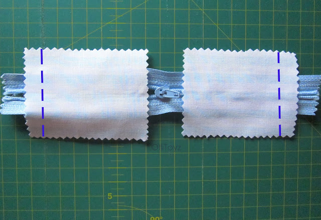 Пришиваем боковинки к молнии, бегунок переведите на середину молнии