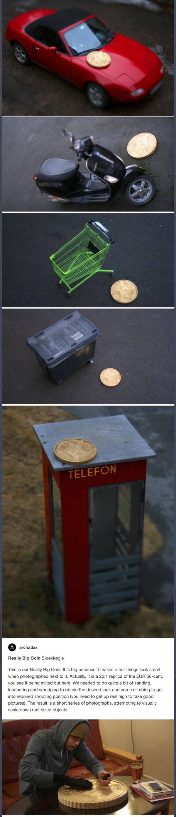 На самом деле, вопреки тому, что вы видите, эта монета является настоящей. Она немного больше обычной, а снимок с таким эффектом - хорошая работа фотографа, на которой фактические размеры объектов намеренно визуально уменьшаются.