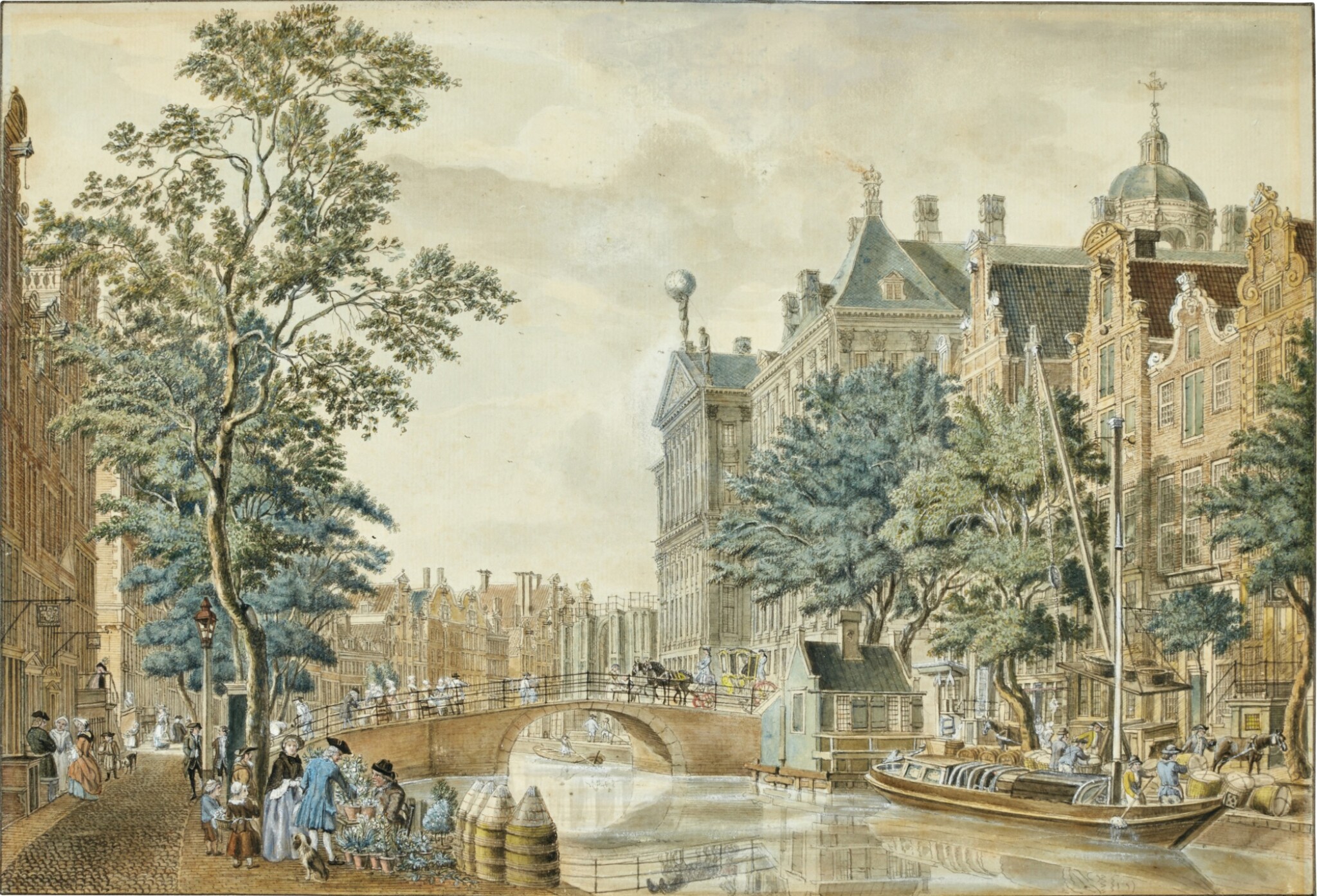 The Nieuwezijds Vorburgwal, Amsterdam, with the back of the Town Hall