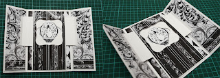 Конструкция данной открытки напоминает ставни, при открытии которых как бы раздвигаются занавески, и мы видим что же за ними спряталось.