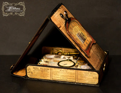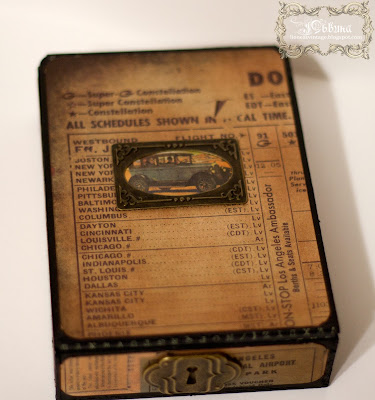 Края скруглила 1,4" и обработала дистресс винтаж фото. Начинаем оклеивать коробочку.