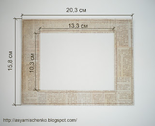 Из скрап-бумаги вырезаем прямоугольник и делаем в нём окошко следующего размера.
