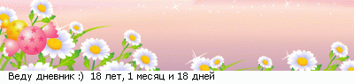 На самом деле, с Ли.Ру я знакома довольно давно. Но, к сожалению, я не из тех людей, кто не любит меняться. У меня было много дневников, каждый держался... примерно месяц, может меньше. Потому что я менялась, и, следовательно, мне хотелось поменять все. Я никак не могла разорвать этот круг: завожу днев, меняюсь, завожу новый, опять меняюсь, опять завожу новый днев... Это может продолжаться до бесконечности, ведь человек меняется каждую минуту... Теперь я опять завела днев... Я очень надеюсь, что он сможет "выжить" хотя бы до Нового Года. Ну ладно, не будем о грустном :) [Думаю это все будет очень интересно через год почитать!]