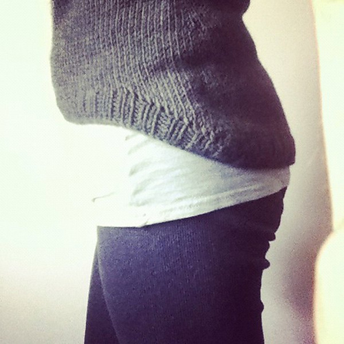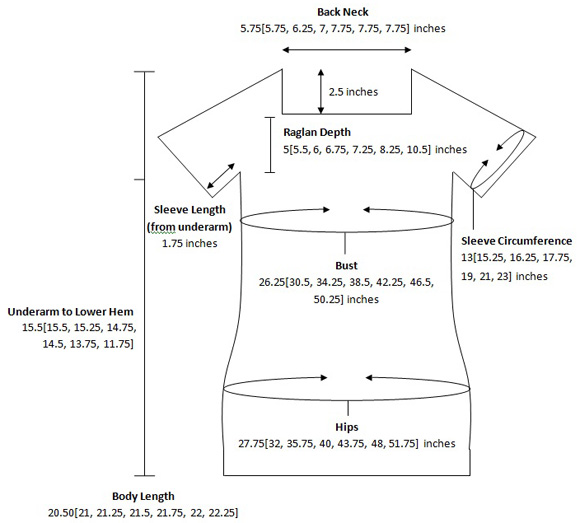 Pullover is worked in the round and from the top down. To achieve the same fit as the sample modeled in the photographs choose a size with a finished measurement that is approximately 4 inches smaller than your actual bust size.