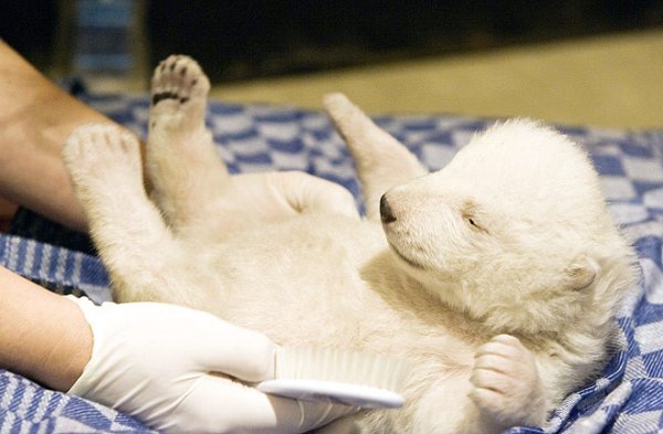 В зоопарке Нюрнберга медведица по имени Вера родила трех медвежат и, как это случается, совершенно ими не интересовалась. Материнский инстинкт у зверя, выросшего в неволе, отсутствует и малыши оставлены матерью. Работники и посетители зоопарка могли только слышать их жалобные крики из "берлоги" – бедняги просто умирали от голода. Веру ничуть не трогал тот факт, что другая медведица Вильма, живущая по соседству, относится к своему потомству (она тоже родила тройню) нежно и заботливо.