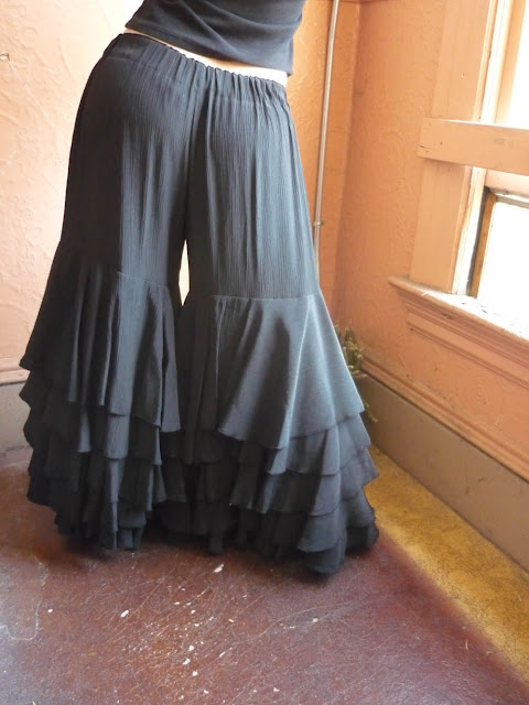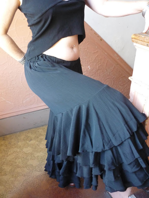 Чаще всего юбки такого типа шьют на кокетке, к которой пристрачиваются присборенные ярусы. Условимся называть ярусом - одну присборенную полоску. Самую короткую длину имеет нижний срез кокетки (или прямой части юбки). Назовем его L0. Следующий ярус имеет длину - L1 = k * L0, где k - это коэффициент сборки яруса.