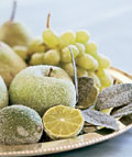 ![]() Один из вариантов украшения тарелки - салфетка в форме конуса плюс ягоды рябины. Идея проста, а вариаций на эту тему - великое множество. Впрочем, салфетку можно сложить как угодно, да и ягоды подобрать по своему усмотрению ![]() © Rachael Hale/Redcover.com Фрукты, политые сахарным сиропом, выглядят так, будто их припорошило снегом. И вкусно, и красиво |