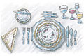 Полная сервировка на одного человека, включающая все столовые предметы (вилки, ложки, ножи, бокалы, тарелки), необходимые при подаче предложенных блюд, называется кувертом. Сервировка стола во многом зависит от составленного вами меню. Например, будет ли подана рыба. Если да, то в сервировке должны присутствовать рыбные нож и вилка. Последовательность расположения приборов на столе зависит от последовательности подачи блюд. К первому поданному блюду (обычно это закуска) берут крайние нож и вилку, ко второму - следующие и т. д.