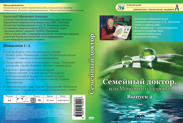 Сообщаю, что появился следующий комплект DVD-дисков с программой: "Семейный докотор, или Монологи о здоровье. Выпуск 2".