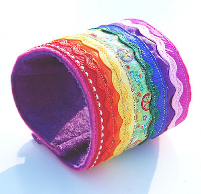 Сделать такой браслет очень просто. Понадобится кусочек фетра, ленты и лента зигзаг + Ваша фантазия...