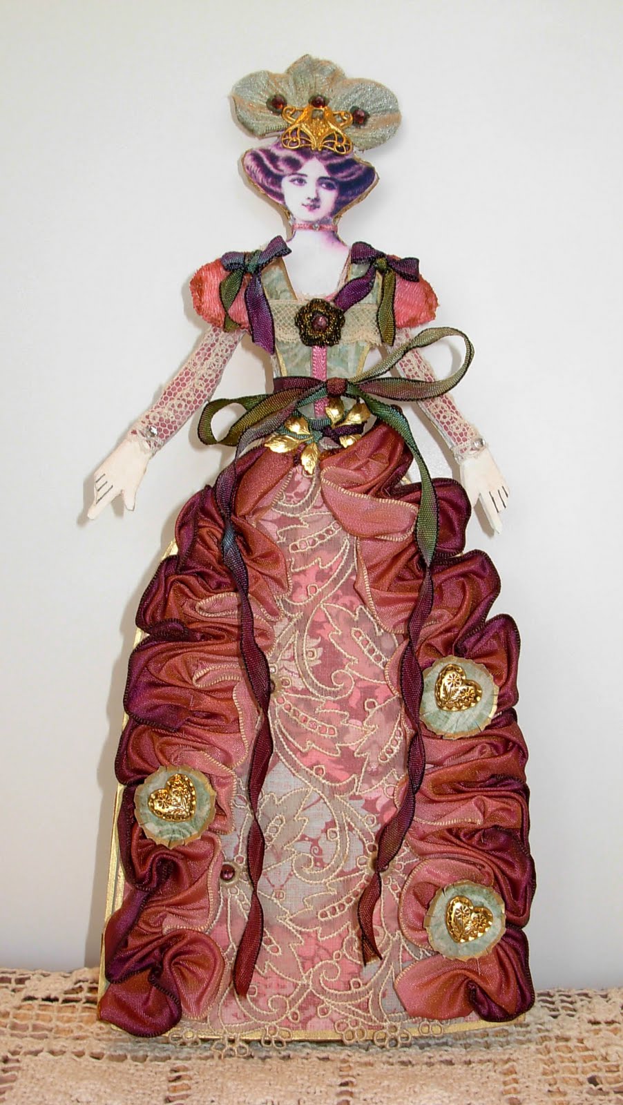 Предлагаю идею, мастерицы-рукодельницы, сделать такие открытки с дамочками у которых платья старинные выполнены из лоскутков ткани. Такие открытки можно будет на "День Святого Валентина" дооформить сердечками, а на "8-е Марта" - цветочками вышитыми, или тканевыми или из бумаги. К идее прилагается видео МК и много разных фасонов для "подглядывания в первоисточник" из старинных журналов мод и одежды фарфоровых кукол винтажной эпохи.