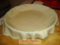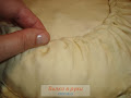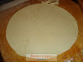 Большую раскатываем в пласт толщиной 3-4 мм и обрезаем так, чтобы получилась круглая лепешка намного бОльшего диаметра, чем сковорода, в которой мы будем выпекать балиш.