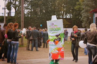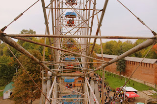 Вчера, 22 сентября сего года, в нашем Смоленске, далее и ранее именуемом мухосранском, официально стартовала невсебенно праздничная неделя посвящённая 1150-летию города. Вызывает сие весьма смешанные чуЙства: с одной стороны привели в порядок всё что успели и теперь из окна туристического автобуса или чёрного членовоза городишко смотрится совсем не плохо, почти как на картинке, главное с маршрута не сбиться)). Но с другой стороны - чего этот глобальный причесон стоил, вполне разумно ожидать после окончания празднеств некоторого количества судебных разбирательств по поводу канувших вникуда мешков денег и некоторых перетасовок в стройных рядах местных чиновников. К тому же многое доделать так и не успели, например у нас на Кирова до сих пор "ищут клады" и из-за перерытой улицы проезд по ней по сложности и скорости похож на восхождение на Эверест. Кстати пару недель назад в одну глубоченную яму у меня под окнами среди ночи свалилась машина ибо водитель не разглядел ограждения что и не удивительно: фонари не работают уж месяца 3, подсветки ограждения небыло и даже светоотражающие знаки отсутствовали. Но, как я понял по шумовому сопровождению, никто не пострадал, кроме машины и ущерб, по идее, будут возмещать местные власти по причине нарушений всего и вся. Но - хватит о грустном, 150 грамм и только о хорошем)). Гулянки по городу уже стартовали и для начала вот на фотке наше колесо обозрения, древнее, самое ржавое в стране и красили его видимо только единожды - когда поставили. А внизу - вид с него на окрестности, более подробно по теме можно глянуть на Смоленском блоге, где в течение всей недели будут появляться новые фотоотчёты о событиях, интересных и разных, а могобыть и не будут...