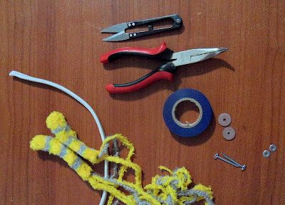 Обратите внимание! На самом-самом кончике каркаса я оставляю петельку, которую не закрываю изолентой. Эту петельку я потом одену на шплинт. Надо быть внимательным - если петельку сделать слишком большой, то она слетит со шплинта. Если же очень маленькой, то шплинт не пролезет.