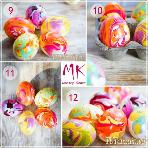 Яркая окраска яиц в технике марморирования шаг за шагом: