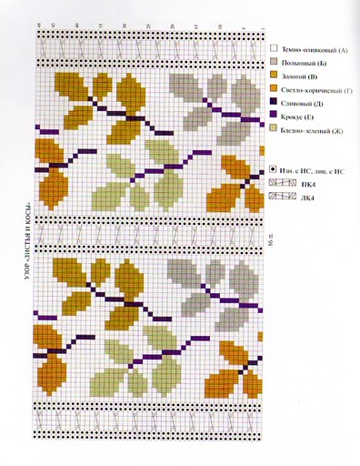 Примерная схема узора листочки(представлена Валентиной с Осинки).Толшина нитки мне кажется тут не очень важна а чтоб попасть в нужный размер можно просто листик увеличить или уменьшить например мой листик связан на 21 петле и его высота 40 рядов это где-то около 19 сантиметров если листик вязать на 17 петлях, то есть его ширина чуть уменьшится, то рядов будет только 30 значит узор укоротится на 4-5 сантиметров а общая длина кофточки уже где-то на 12-15см.Всего для полочки набирала 44+2 кромочные.