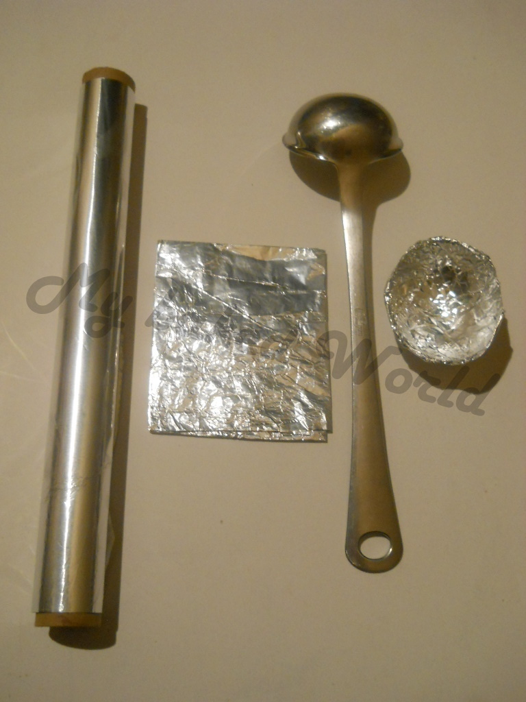 Делаем формочку из фольги для сушки лепестков. Берем 30 см фольги, складываем в квадрат и придаем форму (можно использовать яйцо)