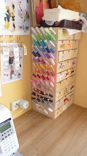 Вот какое то время назад я подумала, что было бы не плохо сделать какой нидь планшетик для развески катушек. Планшетиком послужили торцевые части икеевских ящиков, в которых у меня хранится тесьма и бисер. Ящики с разницей в год-два появлялись у меня в кабинете и заполнялись. Муж опять же сам их собирал.