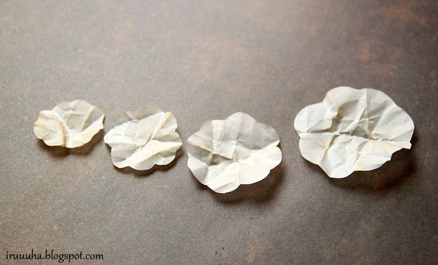 собираем на брадс и загибаем цветочки к середине. и еще больше пачкаем дистресс чернилами )