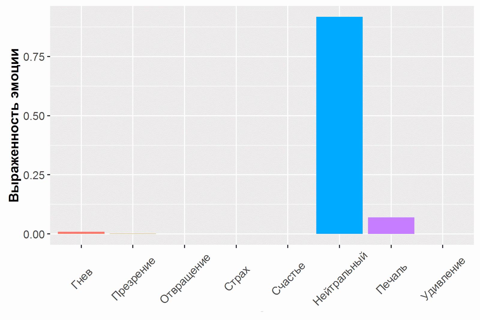 Презрение, алгоритм думает, что это нейтральное выражение и немного счастья. Как по мне, так выражение лица полно наглого презрения. |