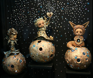 Начинаю с глаз! Прибиваю иглой для фильцевания сначала белые кружочки, затем голубые .